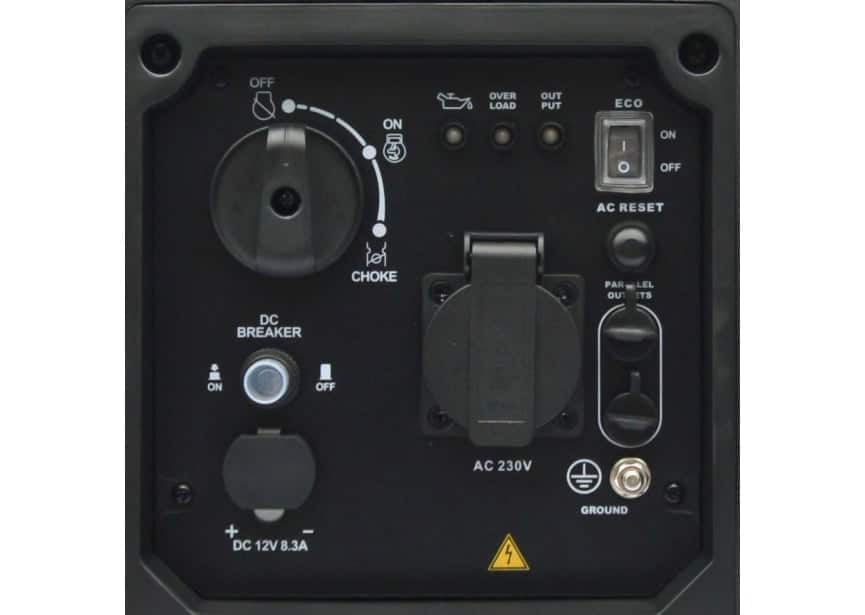 - Voorzien van 1 Chuco stopcontacten, 12V DC aansluiting, oliepeilbeveiliging, thermische overlast zekering