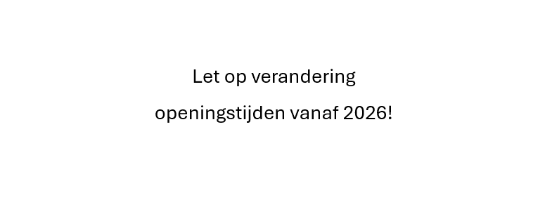 Vanaf het nieuwe jaar (2026) wijzigen onze openingstijden op de zaterdag: wij zijn voortaan geopend op zaterdag van 8:00 – 12:00 (voorheen tot 13:00).
