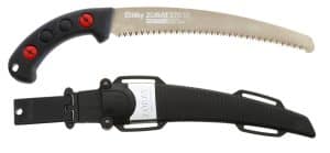 De Zübat Professional, de basisserie van de zagen met gebogen blad is verkrijgbaar in vijf lengten: 240 – 270 – 300 – 330 én 390 mm. De unieke Mirai-Me vertanding (de tanden zijn in de bladdikte ingeslepen, er is geen tandzetting) van 7,5 per 30 mm (de populaire Zübat Professional 330 is er ook met een vertanding van 10 per 30 mm) maakt de zaag zeer geschikt voor snoeiwerkzamheden. Het gebogen blad van de Zübat Professional geeft een hoger rendement voor het werken boven schouder-hoogte en men zaagt gemakkelijker bovenop de tak. Het hardchromen blad is bestand tegen roest en de effecten van hars en zorgt voor een zeer slijtvast oppervlak. Het blad bestaat uit één geheel en loopt door in het handvat wat ervoor zorgt dat de Zübat Professional een perfect uitgebalanceerde zaag is.De Zübat Professional heeft een uit rubber gegoten handvat, dat comfortabel in de hand ligt en trillingen sterk reduceert. De zaag wordt geleverd in een draaibaar, zwart kunststof holster met afneembare riemhouder en is voorzien van 2 kleine rolletjes zodat de scherpe tanden de hoes niet beschadigen bij het in- en uitnemen van de zaag. Het holster heeft onderaan een opening, waardoor vocht en zaagsel uit de holster kunnen vallen.Het Zübat Professional blad kan ook gemonteerd worden op de Zübat Professional stokzagen-reeks, waardoor je deze zaag als stokzaag én als handzaag kunt inzetten.De Zübat Professional behoort tot de basisuitrusting van een opgeleide boomklimmer.