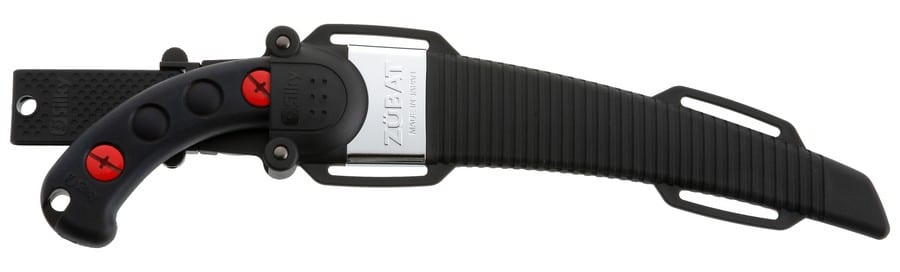 De Zübat Professional, de basisserie van de zagen met gebogen blad is verkrijgbaar in vijf lengten: 240 – 270 – 300 – 330 én 390 mm. De unieke Mirai-Me vertanding (de tanden zijn in de bladdikte ingeslepen, er is geen tandzetting) van 7,5 per 30 mm (de populaire Zübat Professional 330 is er ook met een vertanding van 10 per 30 mm) maakt de zaag zeer geschikt voor snoeiwerkzamheden. Het gebogen blad van de Zübat Professional geeft een hoger rendement voor het werken boven schouder-hoogte en men zaagt gemakkelijker bovenop de tak. Het hardchromen blad is bestand tegen roest en de effecten van hars en zorgt voor een zeer slijtvast oppervlak. Het blad bestaat uit één geheel en loopt door in het handvat wat ervoor zorgt dat de Zübat Professional een perfect uitgebalanceerde zaag is.De Zübat Professional heeft een uit rubber gegoten handvat, dat comfortabel in de hand ligt en trillingen sterk reduceert. De zaag wordt geleverd in een draaibaar, zwart kunststof holster met afneembare riemhouder en is voorzien van 2 kleine rolletjes zodat de scherpe tanden de hoes niet beschadigen bij het in- en uitnemen van de zaag. Het holster heeft onderaan een opening, waardoor vocht en zaagsel uit de holster kunnen vallen.Het Zübat Professional blad kan ook gemonteerd worden op de Zübat Professional stokzagen-reeks, waardoor je deze zaag als stokzaag én als handzaag kunt inzetten.De Zübat Professional behoort tot de basisuitrusting van een opgeleide boomklimmer.
